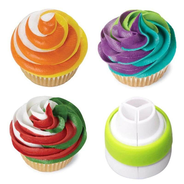 Das Set enthält eine Vielzahl von Düsen und Zubehörteilen für verschiedene Dekorationstechniken.
