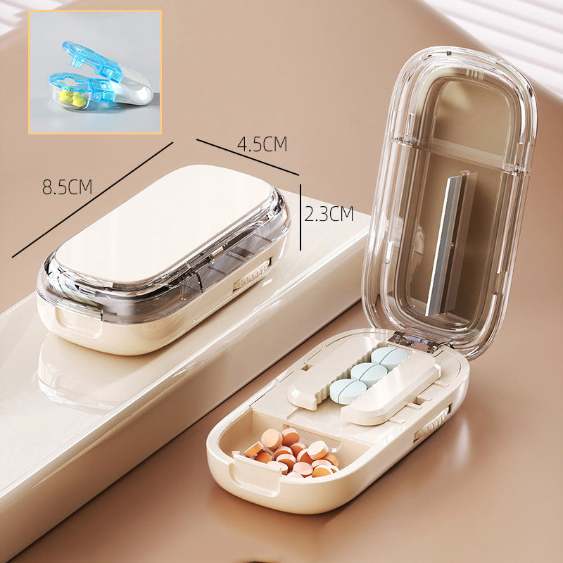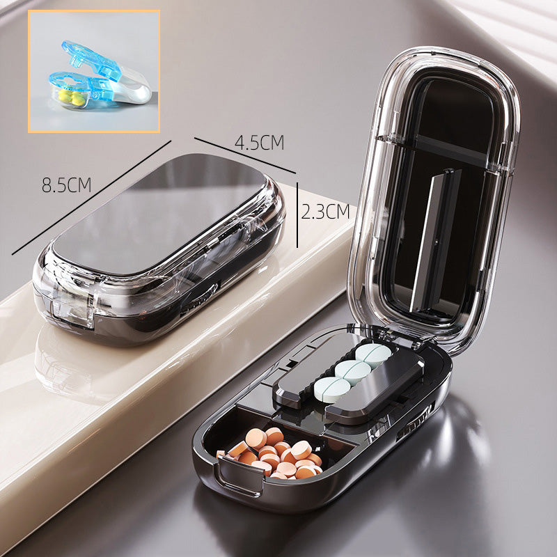 Pakket bevat: 1×draagbare pillendoos met snijder