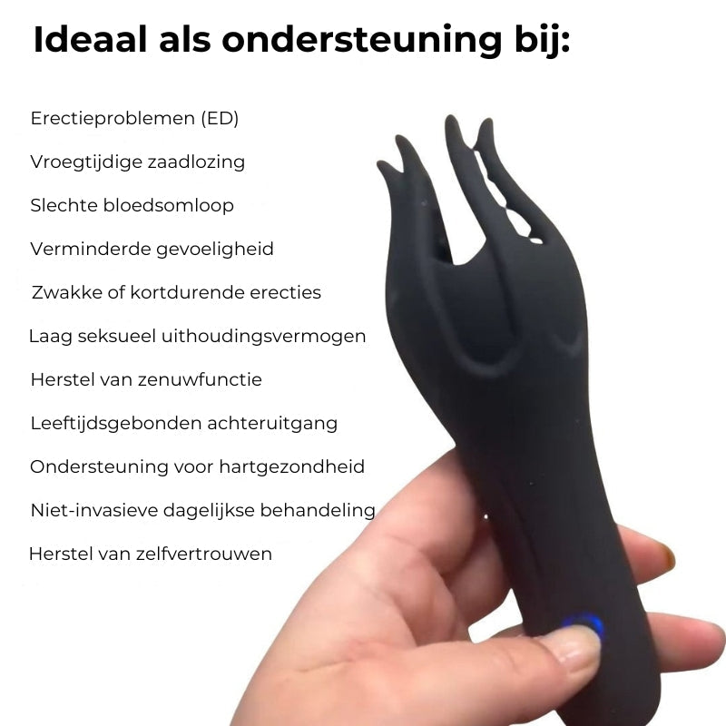 Ontworpen om de oorzaak van impotentie aan te pakken en uw seksuele gezondheid te versterken 2. Verbetert de kwaliteit van de erectie Ervaar stevigere, sterkere en betrouwbaardere erecties 3. Verhoogt het uithoudingsvermogen en de prestaties Houdt het langer vol en krijgt u meer controle tijdens de geslachtsgemeenschap 4. Geeft u uw zelfvertrouwen terug Voel u veilig en zeker in intieme situaties 5. Niet-invasieve oplossing Geen naalden, geen onaangename behandelingen – helemaal zonder chirurgie 6. 100% zonder medicijnen Perfect voor wie een natuurlijke aanpak zonder pillen wil 7. Geen bijwerkingen In tegenstelling tot medicijnen zijn er geen hoofdpijn, misselijkheid of andere ongemakken 8. Privé thuis te gebruiken Geen arts, recept of kliniekbezoek nodig 9. Langdurige resultaten Geen tijdelijke oplossing – maar blijvende verbetering in de loop van de tijd 10. Natuurlijke vergroting Akoestische golven stimuleren het weefsel en kunnen zichtbare groei geven
