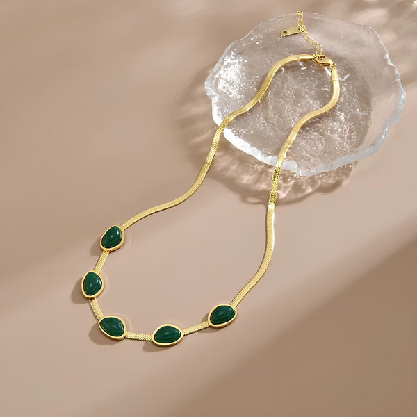 Diese Smaragdkette verwandelt jedes Outfit in einen eleganten Hingucker und unterstreicht Ihre einzigartige Persönlichkeit.