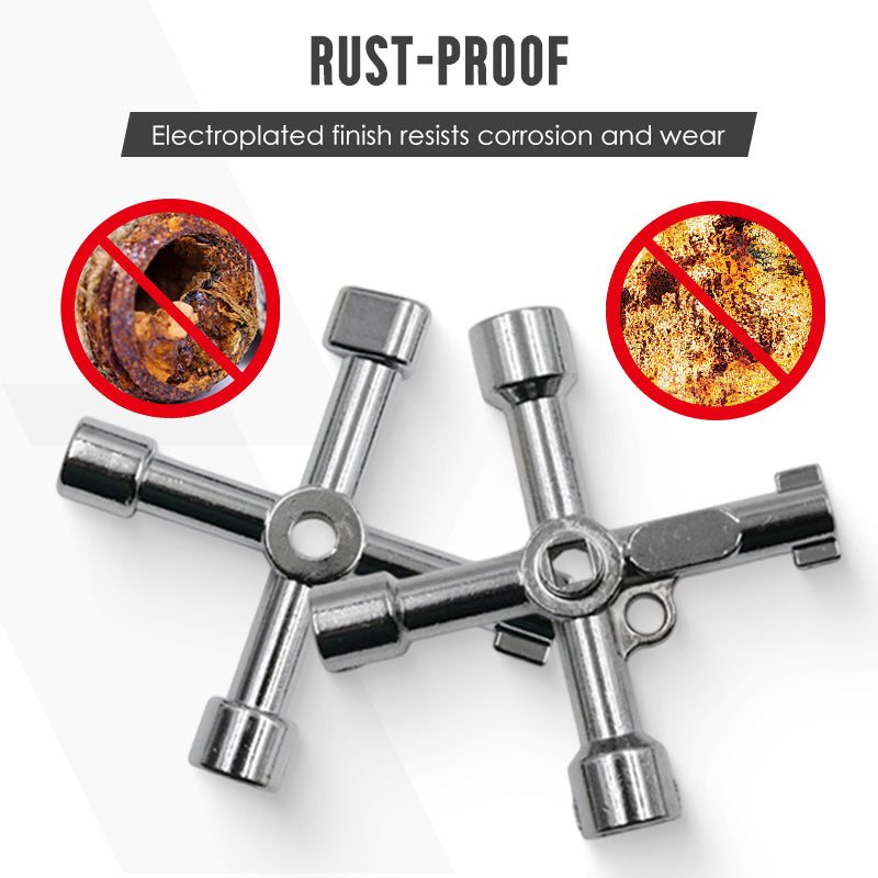 VEELZIJDIG ONTWERP - Deze universele sleutel integreert meerdere veelgebruikte interfaces in één compact gereedschap. Geschikt voor onder andere schakelkastdeuren, elektriciteitsmeterkasten en diverse kleppen. Dit geconsolideerde ontwerp vermindert het aantal benodigde gereedschappen en biedt brede toepasbaarheid in industriële en huishoudelijke omgevingen voor een efficiënte uitvoering van taken.