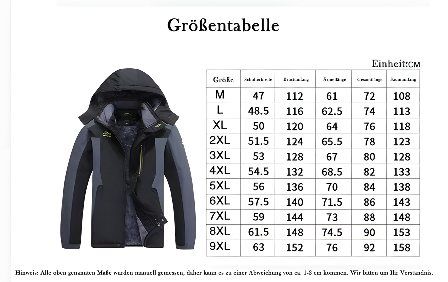 Mit unserer ultimativen Wintersturm-Schutzjacke hast du die ideale Kombination aus Stil und Schutz. Diese innovative Jacke bietet vollständigen Wasserschutz, um dich trocken zu halten, und ist winddicht, um dich vor bitterkälter Luft zu schützen. Dank der angenehmen Passform und warmen Fleece-Innenfutter kannst du alle deine Outdoor-Abenteuer genießen, ohne Kompromisse bei Komfort und Bewegungsfreiheit einzugehen.
