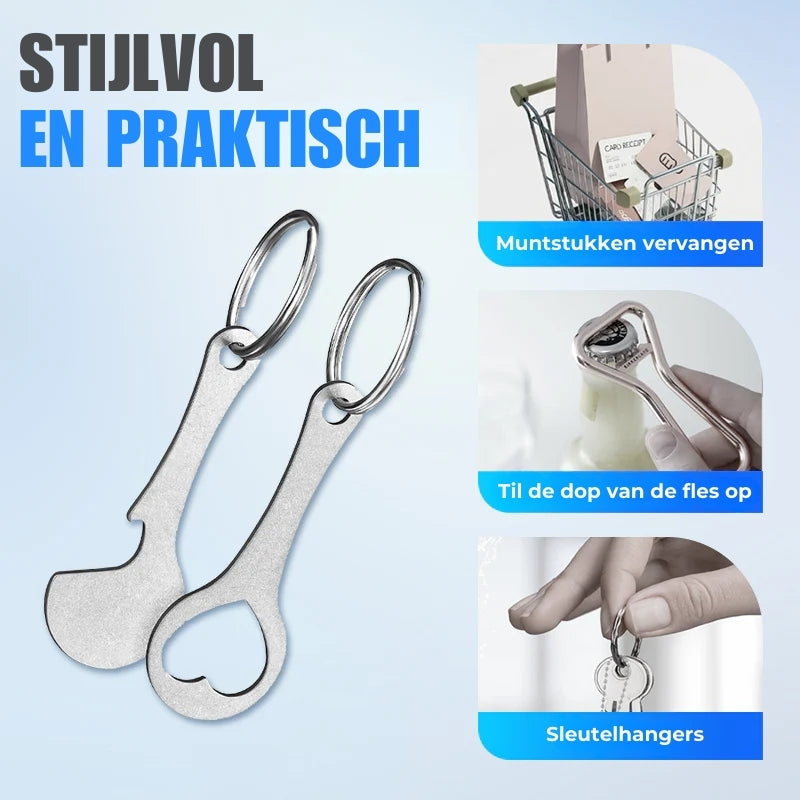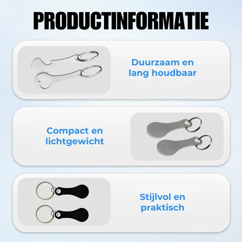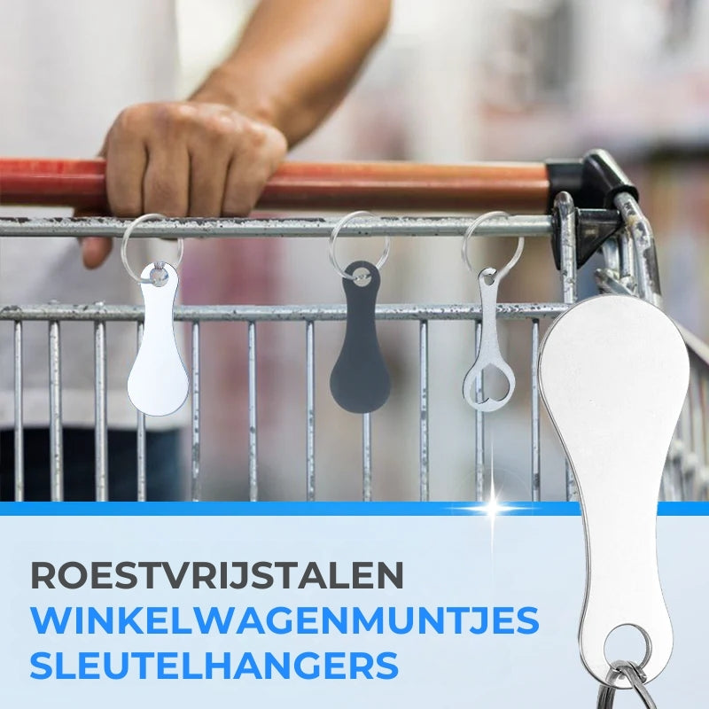 PERFECT VOOR WINKELWAGENS: Speciaal ontworpen om munten te vervangen in winkelwagenvergrendelingen. Deze sleutelhangers schuiven moeiteloos in en uit het mechanisme van winkelwagens, waardoor je boodschappen gemakkelijker en handiger worden.